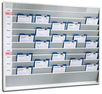 15 vrst - široka izvedba Planska tabla za torbice A4 s 15 vrstami (široka izvedba) * Širina 1575mm* Višina 1765mm* Debelina 78mm